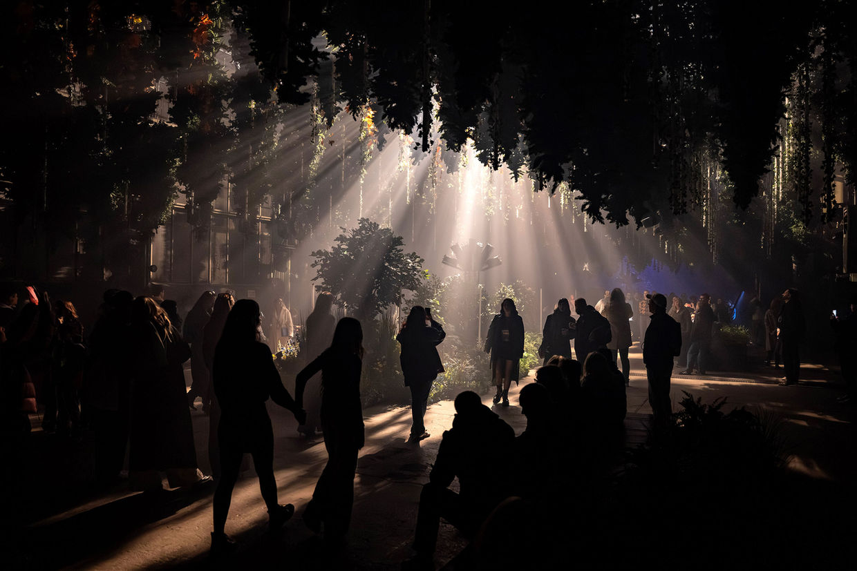 FOREST SEASONS macht den Wald als begehbaren Sehnsuchtsort im Wandel der Jahreszeiten erfahrbar. Die raumgreifende Installation des Licht- und Medienkünstlers Christopher Bauder verbindet Naturmotive, industrielle Architektur und kinetische Lichtkunst zu einer vielschichtigen Komposition.